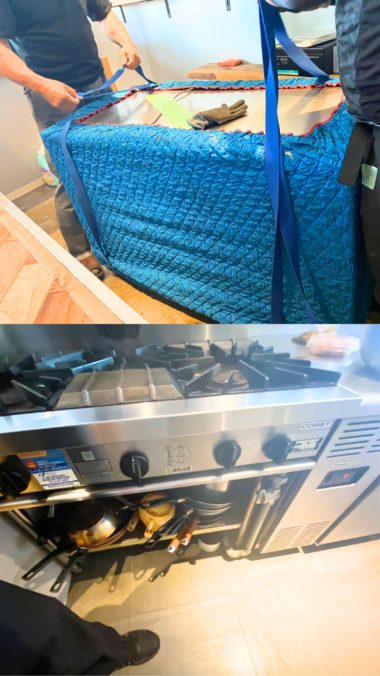 コールドテーブルやガステーブル、製氷機など、「大きいし、重いし、どうしよう…」と思うようなものも、私たちがそっと、丁寧に運び出します。