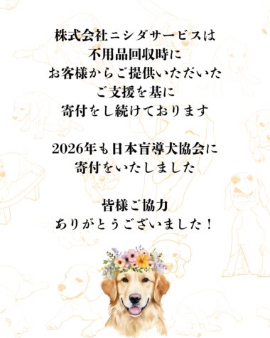 ニシダサービスは社会貢献活動を継続しています!「ワクチン支援」「盲導犬育成支援」のご報告