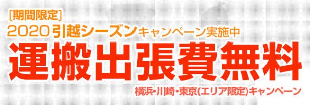 キャンペーンでは運搬出張費を横浜、川崎、東京中心にエリア限定で無料で対応いたします。
